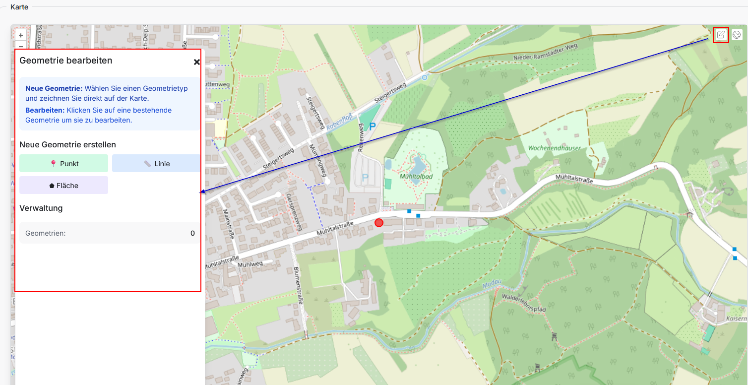 - Geometrien - Es besteht die Möglichkeit die Lage und Ausdehnung eines Vorganges mit ein oder mehreren Geometrietypen zu zeichnen