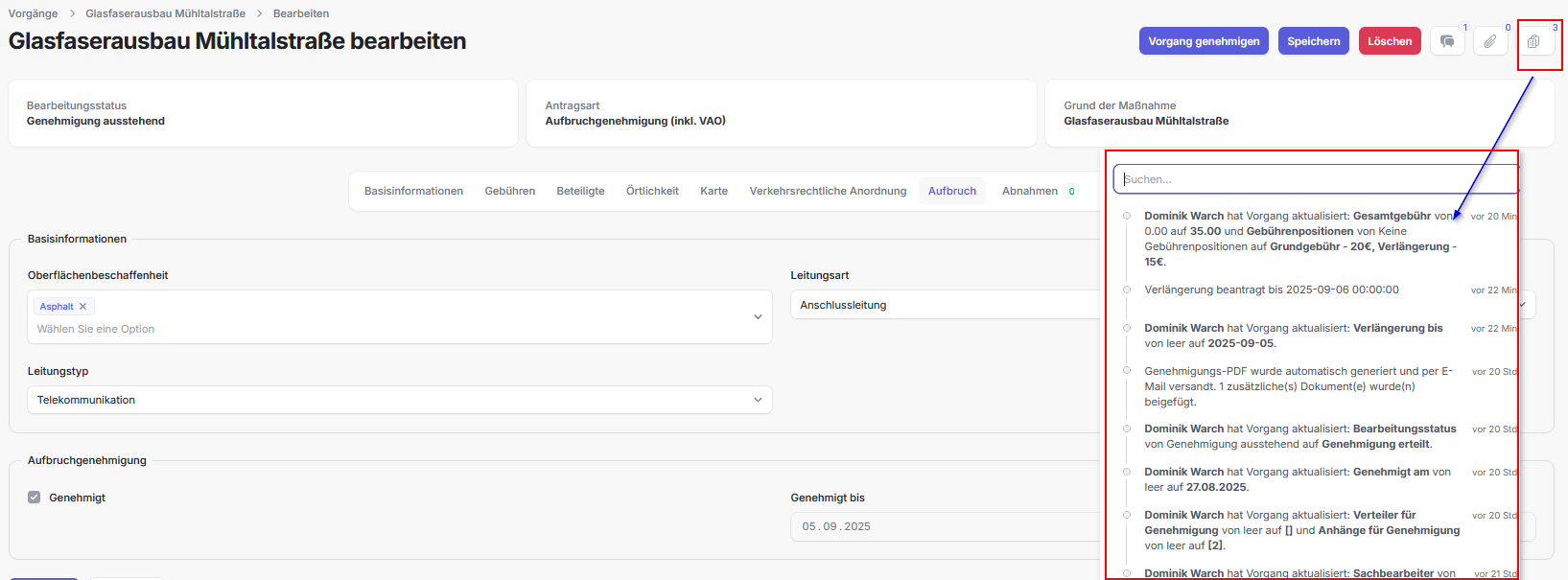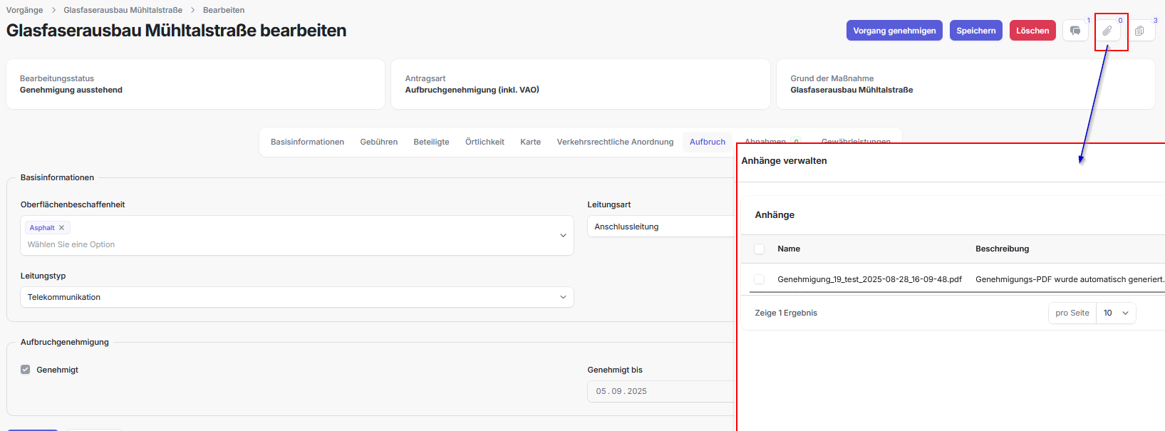 - Die Genehmigungsbescheide werden hier automatisch während der Genehmigung hochgeladen.