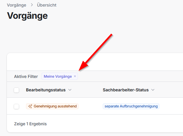 Außer bei den Neuanträgen wird als Standard ein Filter auf "meine Vorgänge" gesetzt.